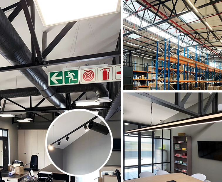 Our lighting solution has transformed the &BEYOND Travel warehouse in Sandton. We supplied stylish PP-ACE linear lights which brighten up their shelves, and a custom cross pendant to create a unique workspace.