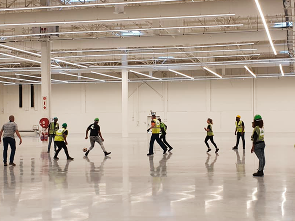 We supplied lighting solutions to Leroy Merlin South Africa Fourways. For this project, we fitted 2780 meters of Proximus fittings to ensure their warehouse was sufficiently illuminated. What we didn’t know was that these fittings also serve as excellent lighting for an epic indoor football arena. Great to see the Leroy Merlin Fourways team having some team-building fun before shelving and products are brought in.