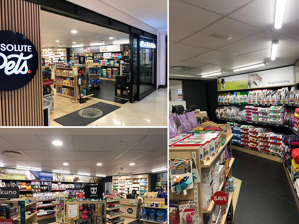 Absolute Pets at Cape Town’s V&A Waterfront is barking up the right tree with the linear LEDs, downlights and spotlights that we supplied to light up their product displays. Track lights were installed at the tills.