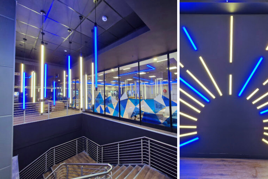 We’ve helped to light up your workouts at the brand new Planet Fitness in Cavendish Square, Cape Town. This project features our bold blue LED strips and a dynamic mix of bespoke lighting, providing members with a unique and exciting experience.
