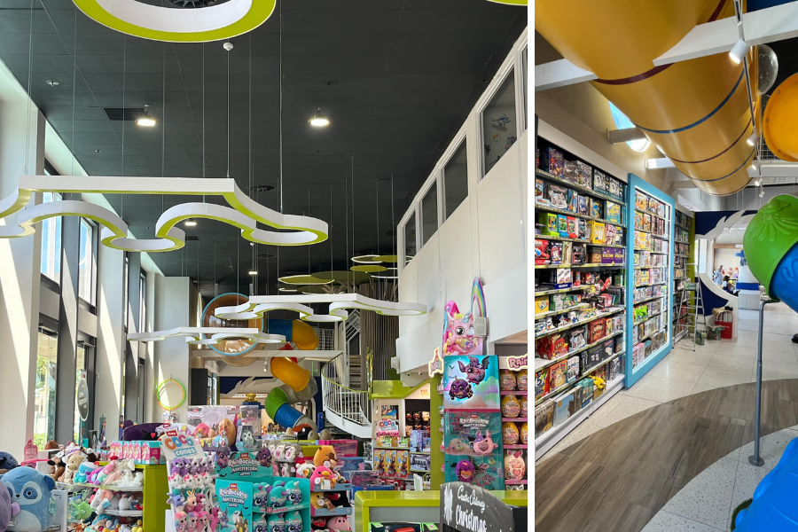 Our in-house manufactured Lighting range – consisting of 6x6 LED panels, highbays, as well as track system and track spots - creates a bright and playful ambiance that perfectly complements the store's fun atmosphere.