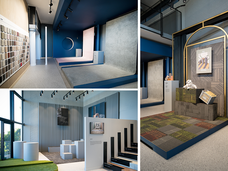 Our lighting solutions highlight Belgotex's carpets and flooring