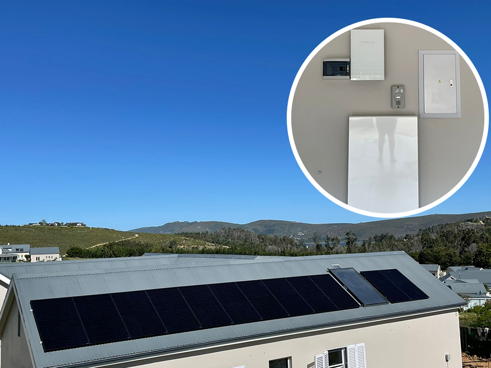 The power’s staying on at this Knysna residence with the 4,26Kw energy and storage solution we supplied. It consists of 335W Longi black modules and Enphase microinverters connected with a Tesla Powerwall.