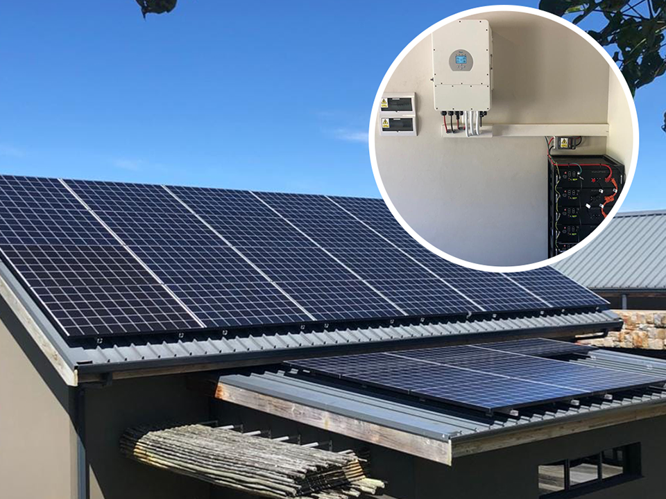 This Knysna residence is running on energy from the sun with a solution we supplied. It consists of a 12kW Deye inverter with 175kW Synapse batteries and 11kW of our sleek black LG neon solar modules.