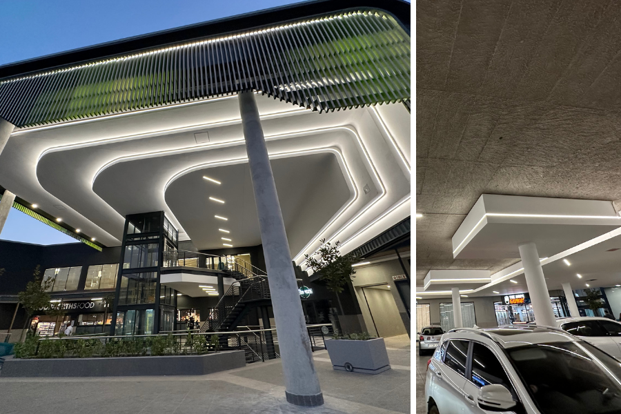 Rubicon’s range of lighting plays a key role in the design of the newly revamped Ridgeview Shopping Centre. Architectural fittings enhance the building’s exterior, with amenity fittings in the bathrooms, carports and food courts. Our in-house manufactured Light Frame range - including linear LEDs, bulkheads, downlights, and cove lighting, provides a reliable and stylish lighting solution for the space.